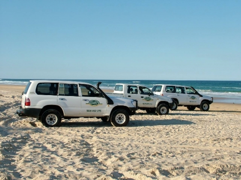 With multiple vehicle types to choose from depending on the number of passengers travelling, all Aussie Trax vehicles feature extra front and rear bumpers, raised suspension and all luggage is stored internally, rather than roof racks, for added stability & safety. The 4WDs are modified to suit K'gari's harsh conditions with sand tyres and modified springs.