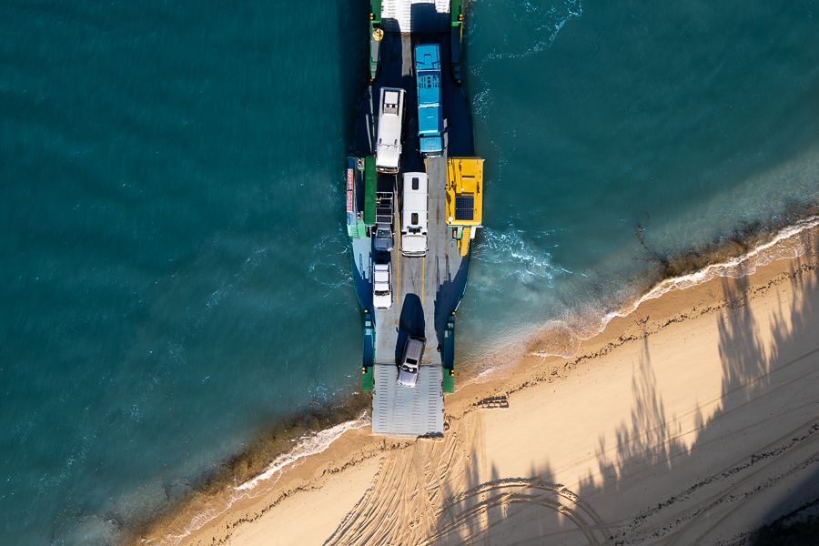 LOCATION: River Heads Barge, Hervey Bay (pick-up vehicle on K'gari).