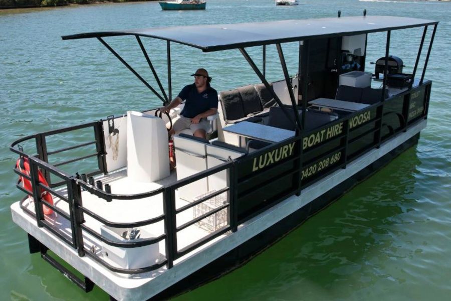 Whether you're celebrating a milestone or just planning a fun day out with friends and family, Luxury Boat Hire Noosa has the perfect 12-seat pontoon boat hire for you! Take to the calm waters of the Sunshine Coast with your own private boat ride along the Noosa River. This full day hire gives you plenty of time to swim, go fishing, explore, relax, and have some food and drinks onboard. With excellent amenities and plenty of space, everyone in your group can kick back and enjoy a flexible, fun day on the water in Noosa!