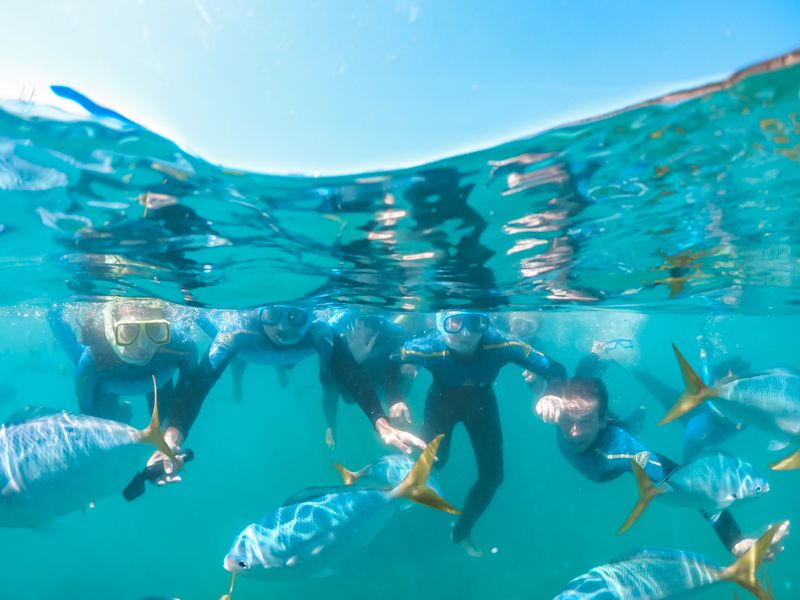 - Snorkel with marine life in the flourishing reef sites