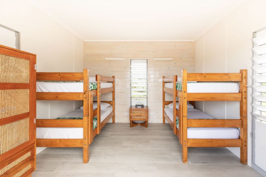You are staying in twin or triple rooms in an eco cabin with shared facilities. Enquire about solo rooms or upgrading to a garden or reef view room!