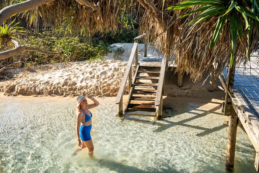 Your adventure begins in Hervey Bay on the Queensland mainland. Catch the River Heads Ferry over to K'gari and arrive right in front of Kingfisher Bay Resort at their private jetty. Check in at the resort and get ready for a festive evening!